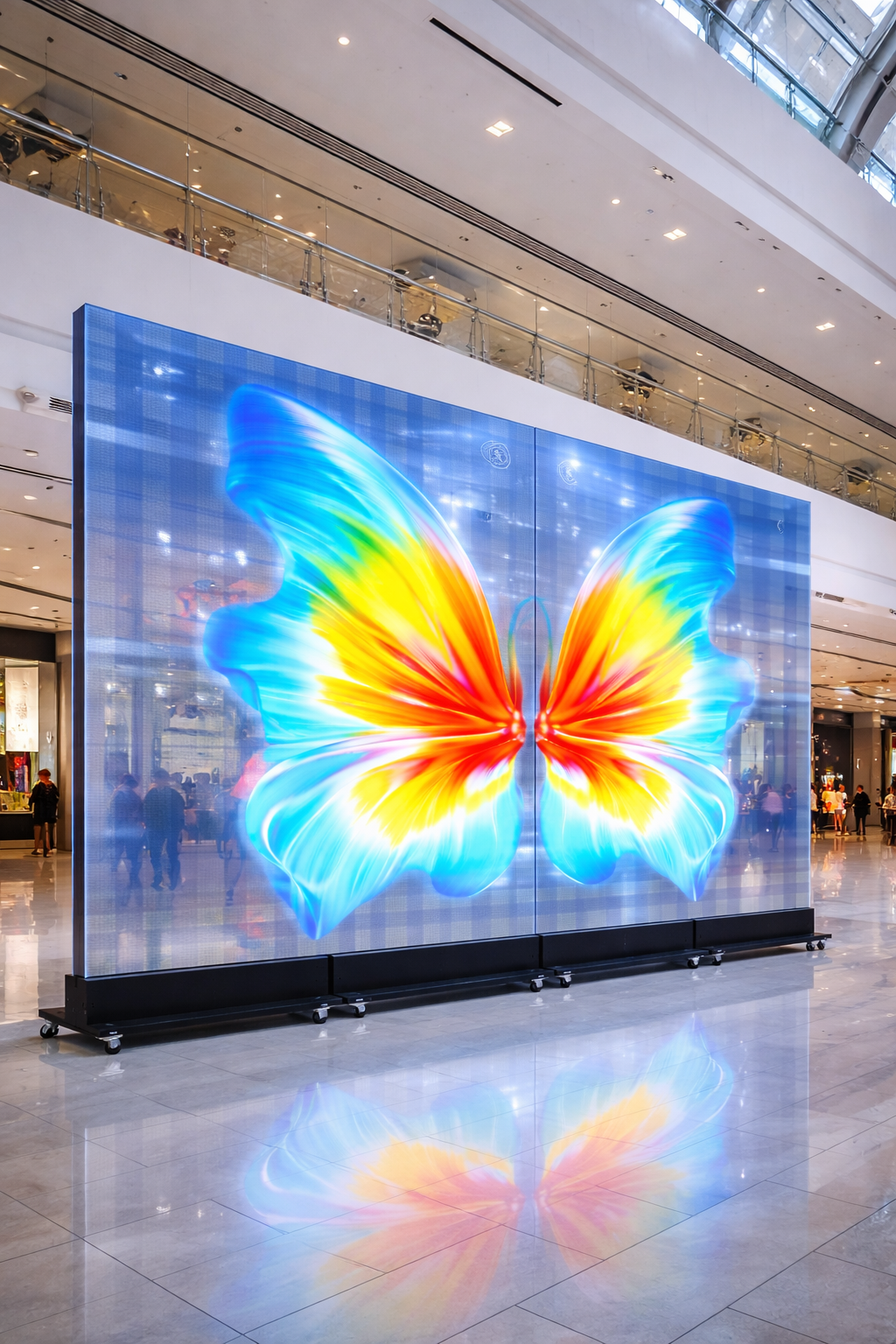 Dimenzija jednog modula: 100 × 200 cm Transparentnost: do 95% (stražnja strana) Prikaz: pun LED prikaz s prednje strane Modularnost: mogućnost spajanja više komada (2, 3, 4+) Instalacija: samostojeće ili uz staklo Upravljanje: Android / CMS / remote control Namjena: retail, izlozi, shopping centri, eventi