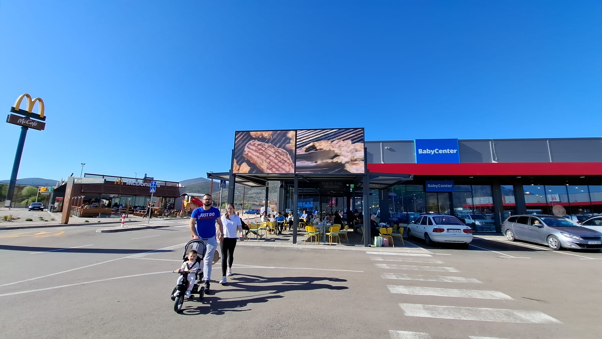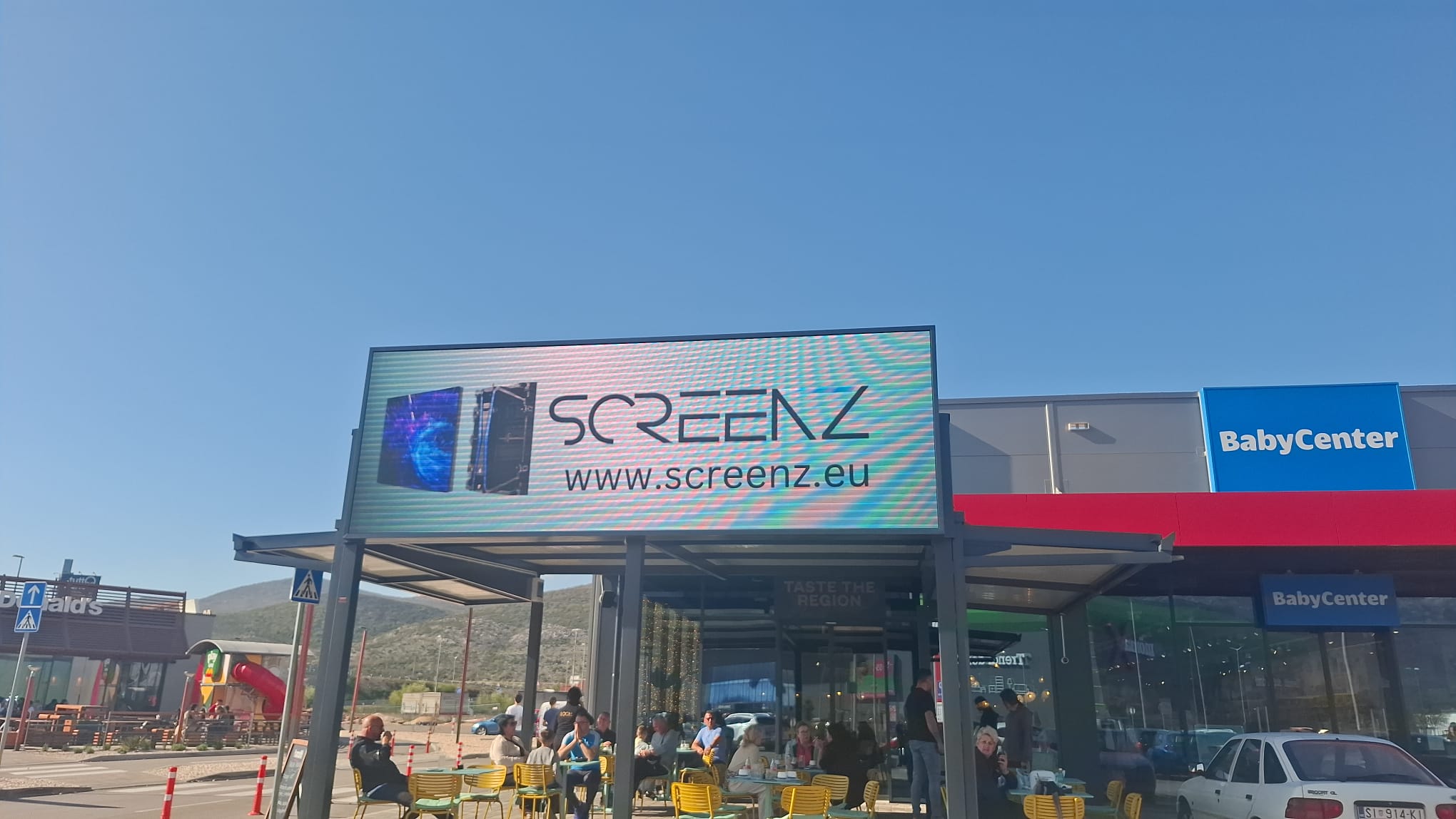 Outdoor LED display dimenzija 576 × 192 cm, pixel pitch P6.6, postavljen je na lokaciji s velikom frekvencijom prolaznika. Visoka svjetlina do 8.000 nits osigurava savršenu vidljivost u svim uvjetima — čak i pod direktnim suncem.